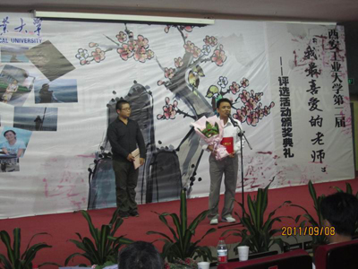 随后,校工会副主席朱晋中宣读了获奖老师名单,他们分别是:光电学院路绍军;机电学院高佳宏、安琳;材化学院赵玉厚;电信学院周芸;经管学院史璇;计算机高金生;建工学院陈翔、张艳霞;外语学院刘改琳、张郁;人文学院赵琳;理学院张锦、李静;体育学院陈亚麟;艺术学院张珂;思政部吕青、王曙光、刘婷、张敏。