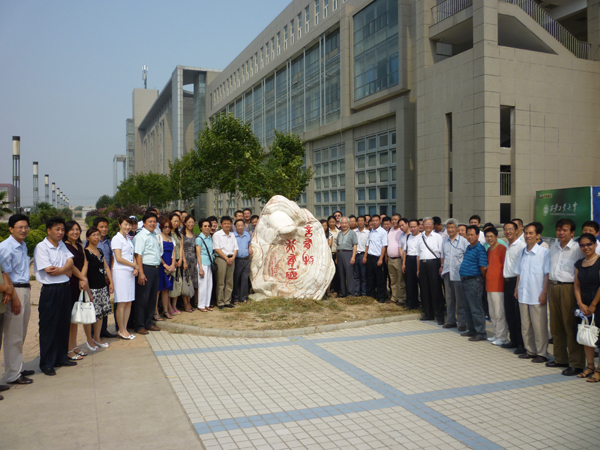 8月7日,乐玩在线客服材料与化工学院(原材料系)86级86604、86508班校友欢聚母校举行毕业20周年聚会。首先返校校友50余人来到未央校区校园及校史馆,看到母校发生的巨大变化感到十分高兴。校友们出资在未央校区经纬广场立景观石一块,题字“言有物,行有恒”寄语在校学生。随后聚会校友前往东晋桃源会议中心举行校友座谈会,原乐玩在线客服校长、现西安工程大学党委书记刘江南;乐玩在线客服党委副书记丁养斌、原乐玩在线客服洪庆校区主任、现陕西科技大学党委副书记李虎成;原西安工业学院副院长严文;国际交流与对外合作处处长、校友总会副理事长路金龙;材料与化工学院院长李建平;材化学院党委书记赵玉厚;图书馆副馆长郭俊仓;科研处副处长彭渝丽;部分材化学院教师;校友总会工作人员及50多位校友参加了座谈会。座谈会首先由返校校友介绍聚会班级同学的发展概况,随后各位与会领导分别讲话。丁副书记对校友们事业有成返回母校表示祝贺,并叮嘱校友们在工作的同时一定要注意身体健康;刘江南书记首先回忆起和学生们在二十年前一起挤在只有十几平米的家里看世界杯的情景,随后刘书记对母校和校友们取得的成绩给予了充分的肯定。座谈会结束后,校友们又驱车来到金花校区,看到曾经学习、生活的地方,思绪仿佛又回到了二十年前,不时驻足合影留念。
