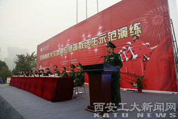 廉振民在演练总结会上致辞。他对演练进行了总结,并向来宾介绍了我校近年来在安全稳定工作上采取的措施。长期以来,我校党政领导班子把稳定安全做为教学科研工作的前提和保证予以高度重视和大力投入,在突发性公共安全事件管理上取得了一定的成绩。2011年我校被评为省级“平安校园”。