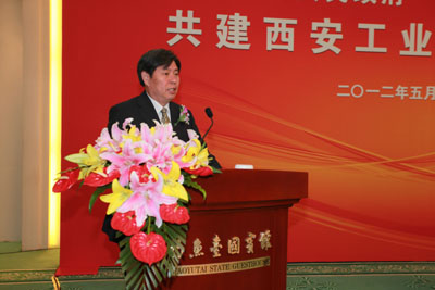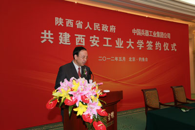陕西省副省长朱静芝、中国兵器工业集团公司副总经理曾毅分别代表陕西省人民政府和中国兵器工业集团公司签订共建协议。