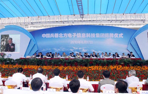 (本网讯)6月17日,中国兵器北方电子信息科技集团揭牌仪式在南京举行。中国兵器工业集团公司总经理张国清、江苏省副省长史和平、总装备部陆装科订部副部长雷红雨等有关领导以及兵工企业、科研院所和高校代表出席了当天的活动。