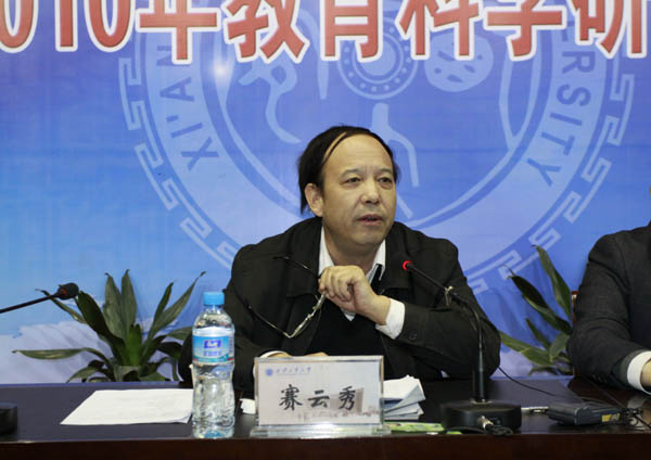 最后,党委书记赛云秀作了重要讲话,对当前的教育教学形势作了分析,认为我校适应了高等教育大众化的需要。赛书记指出我们要以创先争优为切入点,以128建设为龙头,以内涵建设为核心,教学与科研并进,齐心协力促进学校全面发展。
