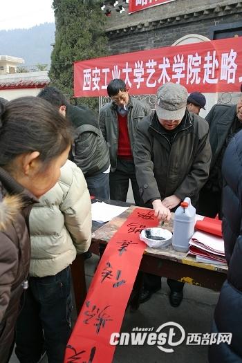 在捐赠仪式现场,乐玩在线客服艺术学院的师生们现场挥毫,为灾区创作了“自强不息”、“团结就是力量”、“知识就是财富”等书法作品,还为闻讯赶来的乡亲们书写了数百副春联。同行的分别来自美国、吉尔吉斯斯坦和日本的四位友人,也挥毫泼墨,他们书写的春联赢得灾区群众的掌声。据悉,自去年“5.12”大地震发生后,乐玩在线客服多次举办了形式多样的赈灾义卖活动,所得数万元款项均捐给了地震灾区。