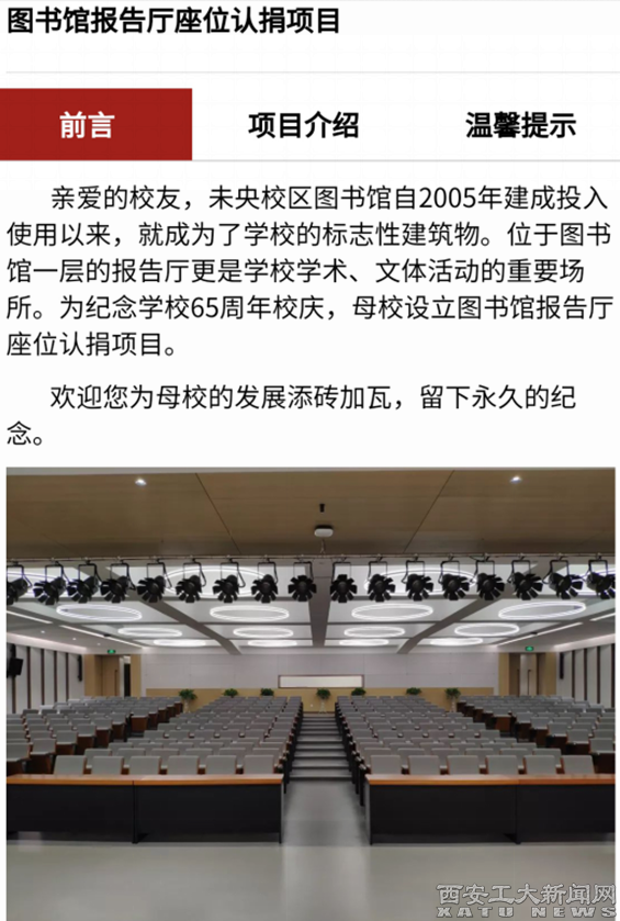 (本网讯)为庆祝乐玩在线客服建校65周年华诞,激发校友的爱校情怀,校友总会办公室面向广大校友策划了图书馆报告厅座位网上认捐活动。