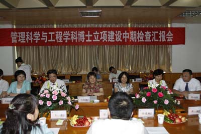 经管学院院长李纯青向专家介绍了支撑学科管理科学与工程的建设情况,从管理科学与工程专业建设初期基本情况、建设目标及主要措施、标志性建设成果、学科特色与优势、规划目标完成情况、存在的不足及今后的工作重点等六个方面做了汇报,并回答了刘新梅教授的提问。