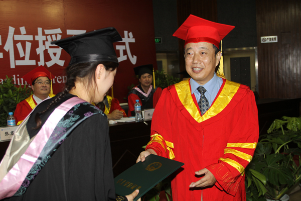 随后,副校长张君安一一为省级优秀毕业生、优秀学生干部拨穗,并授予学位证书。