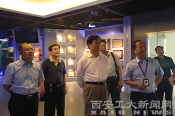 苗润才在二〇二所所长董文祥、党委书记邹服进陪同下参观了成果展厅和吴运铎纪念馆。纪念馆里一张张吴老的照片,一件件吴老曾用过的物品,一个个感人的故事无不诠释着吴运铎“把一切献给党”的精神,这种精神也感动着在场的每一个人。