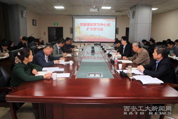 (本网讯)10月10日下午,西安工大党委理论学习中心组召开专题研讨会议,省委第八巡回指导组副组长、西安邮电大学党委副书记张新柱,指导组成员、陕西警官职业学院宣传处副处长付亚川同志参加。会议由校党委书记刘卫国主持。