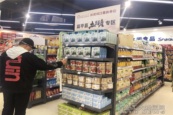 (本网讯)为深入贯彻习近平总书记在解决“两不愁三保障”突出问题座谈会上关于“组织消费扶贫”的重要指示精神,响应党中央和国务院关于深入开展消费扶贫助力打赢脱贫攻坚战的号召,11月16日,富平县土特产专柜在乐玩在线客服校园超市内正式开张运营。琼锅糖、棒棒馍、羊奶粉、羊奶片等20多种富平地道农特产琳琅满目。