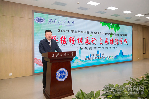 3月24日,校医院联合学工部在图书馆报告厅举行“世界防治结核病日”活动。校党委副书记梁云鹤参加活动并讲话,活动由校医院院长贾应应主持。