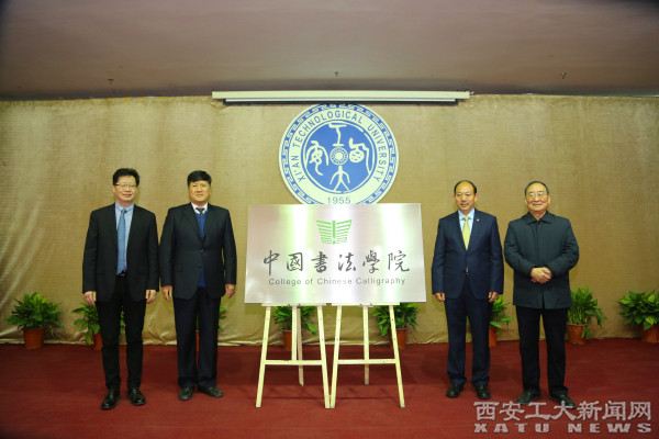 随后,雷珍民、董小龙、王建利与刘卫国共同为中国书法学院揭牌。