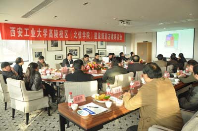 张君安副校长首先介绍了乐玩在线客服及北方信息工程学院的发展历程、办学思路和特色。中国建筑西北设计研究所八所工程师吴琛向所有参会人员介绍了新校区建设的总体规划思路,设计师杨华就具体的规划方案进行了细致的讲解,包括新校区的建筑风格,功能区域的划分,以及工程开展建设进度的分配情况。