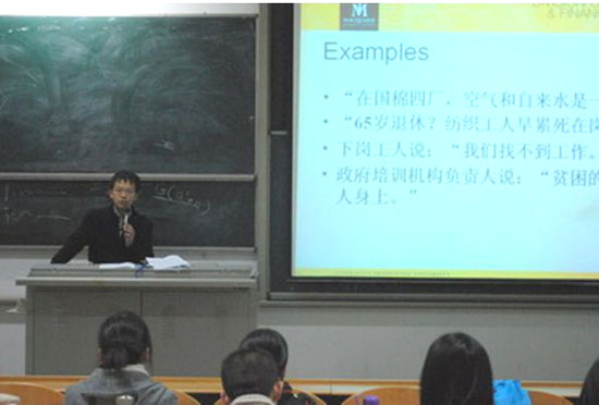 程志明博士主要针对城市贫困群体的生存状况做了分析,为研究生在今后做学术方面课题提供了帮助和启示。他还以自己和其同学在国外求学的过程为例,讲述了在国外求学的艰难,说明成功的关键在于自己永不言弃的斗志。他还介绍了如何与国外大学联系、如何增强自己申请国外大学奖学金的能力等,给准备留学的同学提供了很大帮助。