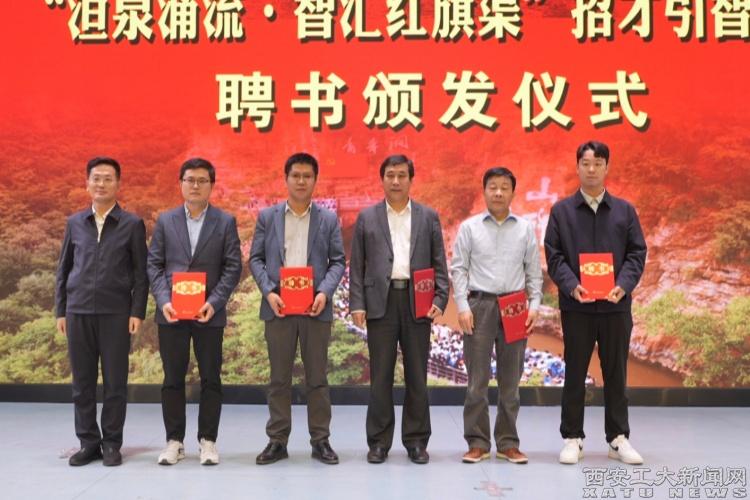 (本网讯)9月25日上午,安阳“洹泉涌流·招才引智万里行”产才融合专项西安站活动暨“红旗渠工匠”产教融合示范基地建设启动仪式在我校双创楼报告厅举行。校党委副书记马福,安阳市委人才办副主任、市人才工作服务中心主任胡志鹏,林州市委常委、组织部部长刘树伟,河南红旗渠干部学院党委委员、纪委书记王晨钟等领导出席活动,活动由我校党办、校办副主任孙杨主持。